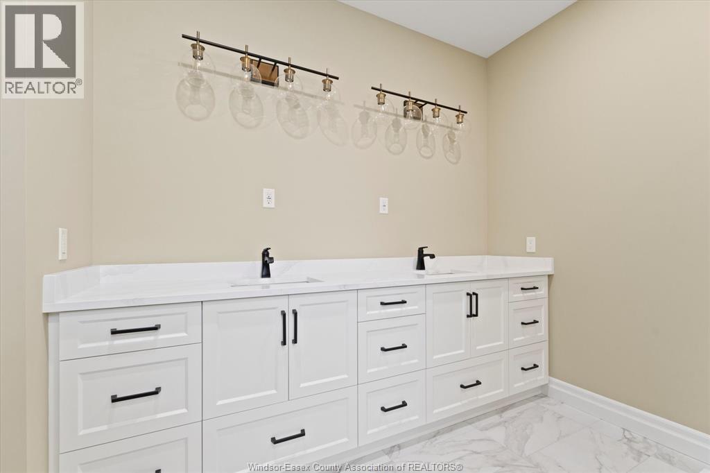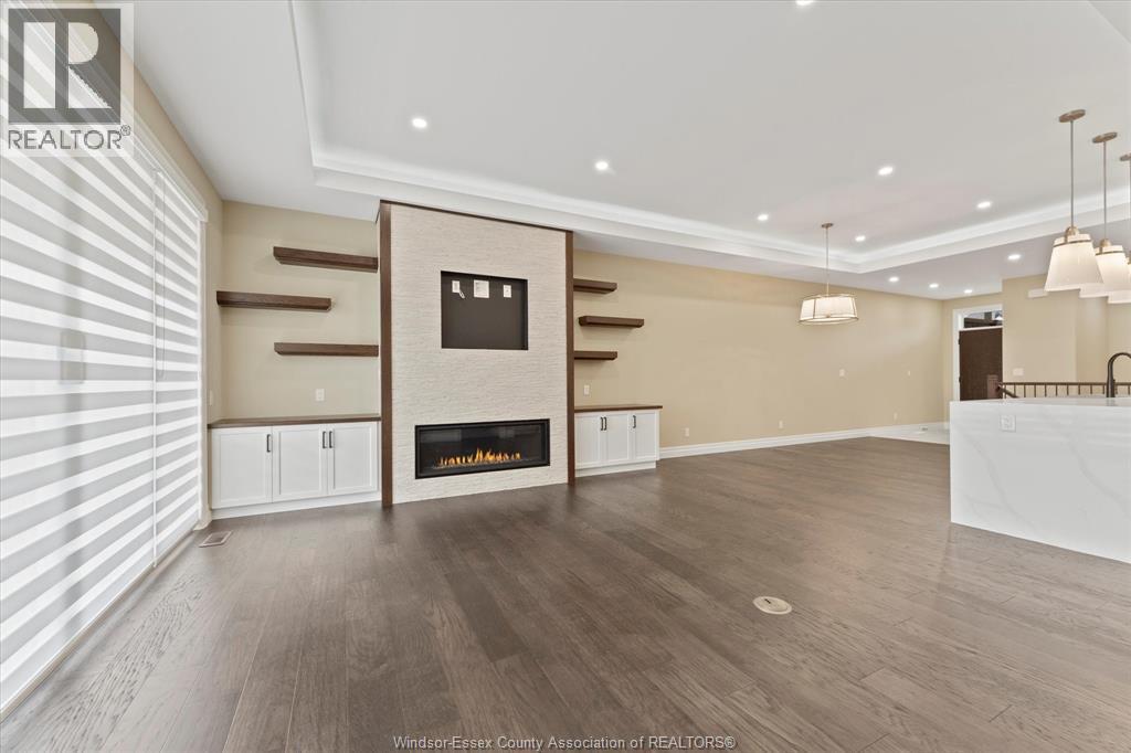 MODEL HOME OPEN EVERY SUNDAY 1-4PM - FLOORPLAN W/GRADE ENTRANCE & FINISHED BASEMENT SUITE - Welcome to Cottam, just 18 mins to Windsor! These luxurious ranch-style Twin Villas by Ridgeside Homes offer 2 floorplans and are built with the highest quality of materials and craftsmanship. Incredible curb appeal with full brick/stone exterior, 4 car conc. driveway, rear privacy fencing, sodded front & backyard & front yard sprinkler system incl. Enjoy 9ft ceilings w/10ft tray & ambient LED lighting, engineered hardwood flooring and porcelain tile, custom cabinetry, 9ft island w/quartz counters, walk-in pantry, ceramic b-splash, living rm w/N.G. fireplace & 12ft patio doors to cov'd conc. patio, main-floor laundry, prim. suite w/tray ceiling, walk-in clst, dble vanity, ceramic/glass shower. Finished basement package gives ~1600 sq ft of addt. living space incl. full kitchen, 2 bdrms, 1 full bthrm, laundry room & gas fireplace. Note: Approx. $100/month for lawn maint., snow removal & roof fund. HST Incl. w/rebate to builder. Peace of mind with 7 Yrs of New Home Warranty w/Tarion! (id:4555)