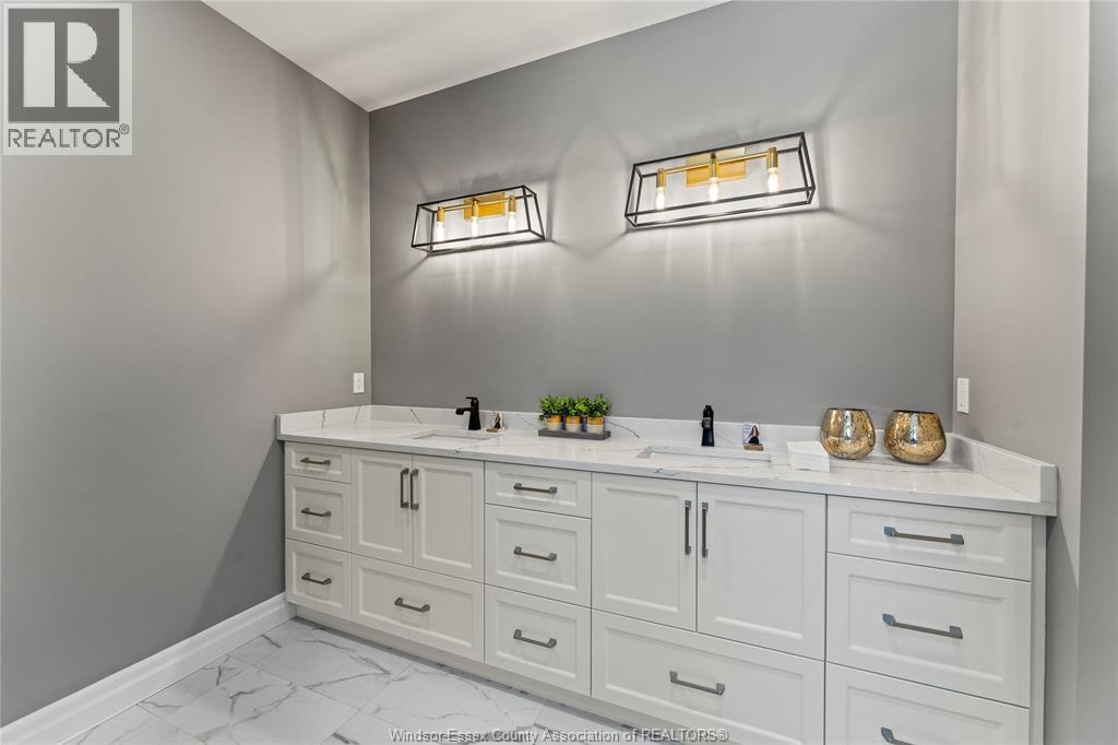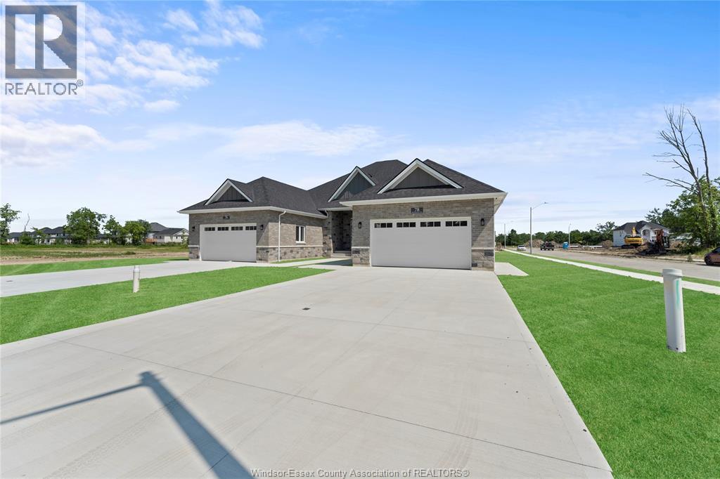 MODEL HOME OPEN EVERY SUNDAY 1-4PM - FREE FINISHED BASEMENT PACKAGE - $65,000 Value! - Welcome to Cottam, just 18 mins to Windsor! These luxurious ranch-style Twin Villas by Ridgeside Homes offer 2 floorplans and are built with the highest quality of materials and craftsmanship. Incredible curb appeal with full brick/stone exterior, 4 car conc. driveway, rear privacy fencing, sodded yard & front yard sprinkler system incl. Enjoy 9ft ceilings w/10ft tray & ambient LED lighting, engineered hardwood flooring and porcelain tile, custom cabinetry, 9ft island w/quartz counters, walk-in pantry, ceramic b-splash, living rm w/N.G. fireplace & 12ft patio doors to cov'd conc. patio, main-floor laundry, prim. suite w/tray ceiling, walk-in clst, dble vanity, ceramic/glass shower. Basement package gives ~1600 sq ft of addt. living space incl. 2 bdrms, 1 full bthrm, opt. wet bar and opt. gas fireplace. Note: Approx. $100/month for lawn maint., snow removal & roof fund. HST Incl. w/rebate to builder. Peace of mind with 7 Yrs of New Home Warranty w/Tarion! (id:4555)