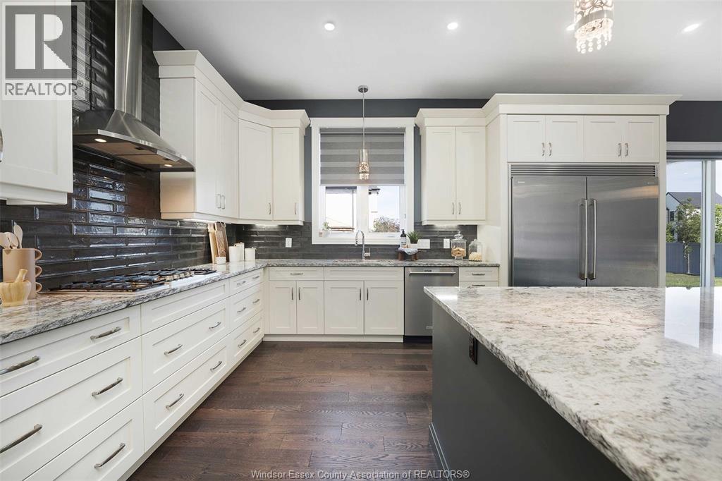 Step into refined living with this executive two-storey home—a striking fusion of stone, stucco, and brick—ideally situated on a beautifully landscaped lot. In a highly sought after LaSalle neighbourhood on a quiet street right off Donato. Designed for discerning homeowners, this luxury residence showcases over approx. 5,000 sq ft of impeccably finished living space across three levels, including a finished basement and a 3-car epoxy-coated garage. The main level boasts soaring 10-foot ceilings, 8-foot solid doors, and oversized windows adorned with motorized zebra blinds, all complementing hardwood and porcelain tile flooring. At the heart of the home lies a gourmet kitchen featuring a substantial granite-topped island, full butler’s pantry with built-in cabinetry and frosted glass door, and high-end finishes ideal for both daily living and elegant entertaining. Entertain effortlessly with a grand family room, a spacious dining room, a stylish living room with built-ins, an office/study, a full main floor bathroom, and a mudroom with custom cabinetry—perfect for quick access to the garage side door and outdoor hot tub retreat. An elegant oak staircase leads to the upper level where you'll find 4 spacious bedrooms, 3 bathrooms, and a laundry room. The primary suite is a private oasis with a luxurious ensuite featuring glass walk-in shower, dual vanities, and an expansive California-style walk-in closet with built-ins. The fully finished lower level offers 2 additional bedrooms, a full bathroom, a second fireplace with a custom stone feature wall, creating the ideal space for guests or an in-law suite. Outdoors, the luxury continues with a concrete driveway, fenced yard, professional landscaping, extra concrete including stamped steps to the hot tub, and a gazebo. This exquisite residence is the perfect blend of timeless design, thoughtful craftsmanship, and unparalleled functionality—crafted to impress and built to last. (id:4555)