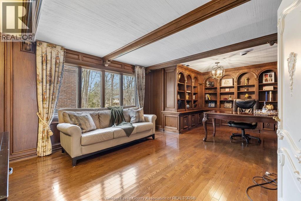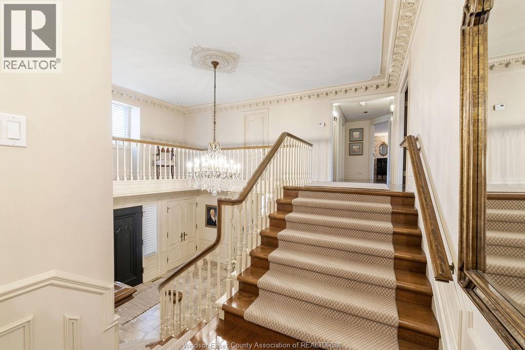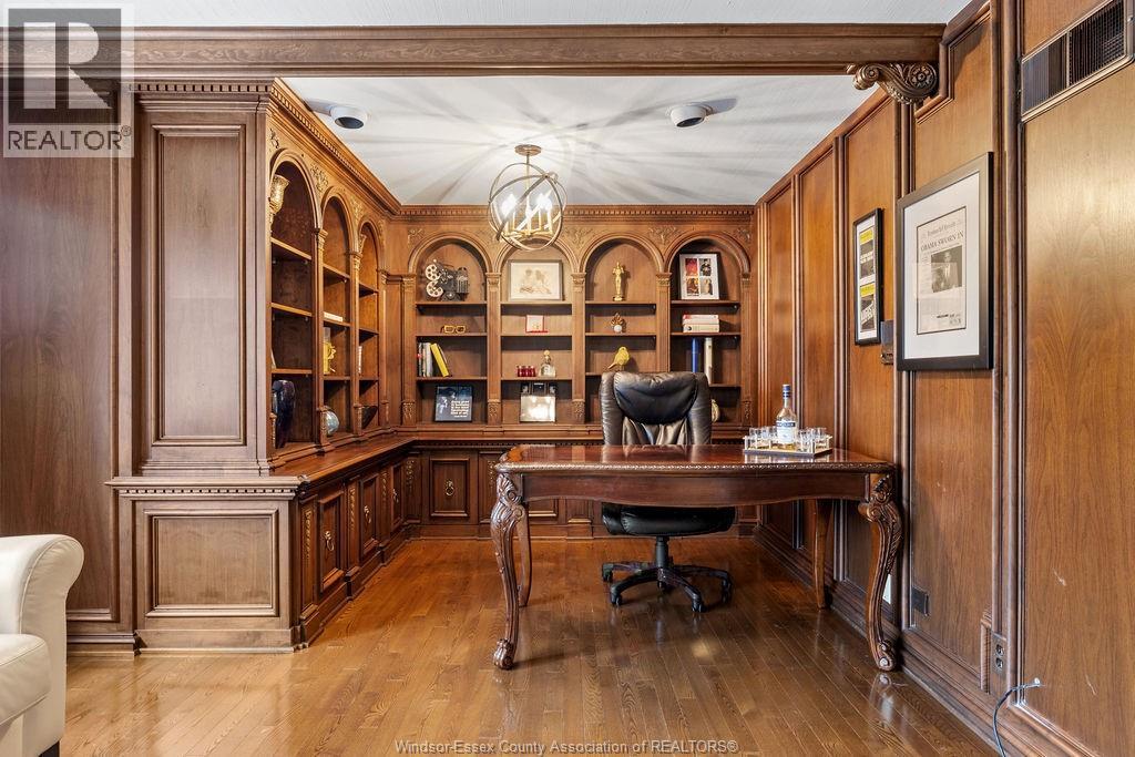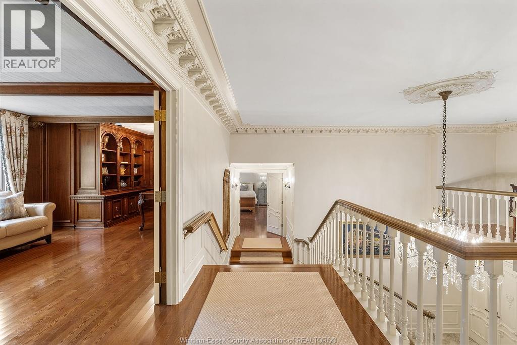 EXECUTIVE ESTATE ON SECLUDED STREET STEPS FROM ESSEX GOLF & COUNTRY CLUB & U.S.THIS HOME FEATURES CLASSIC ARCHITECTURE WITH SUPERB QUALITY. EXQUISITE OAK STAIRCASE & GRAND FOYER WELCOMES YOU TO THIS LAVISH HOME, EVERY ROOM IS SPACIOUS W/NUMEROUS CUSTOM DETAILS. SUNKEN LIV RM, FORMAL DIN RM, VERY LARGE OPEN CONCEPT KITCHEN W/A 11FT ISLAND, SEPARATE BAR AREA & FAMILY RM W/GAS FIREPLACE OVERLOOKING SERENE YARD. 2ND FLR PROVIDES A 800 SQ FT(APPROX) PRIMARY SUITE W/WALK-IN CLSTS, ENSUITE W/RARE MARBLE DRESSING ROOM, STEPS TO 2 OVERSIZED BDRMS OR WORK FROM HOME IN THE WALNUT LINED LIBRARY/DEN. THIS PRIVATE PROPERTY IS SURROUNDED BY 5FT BRICK WALL & TALL MATURE TREES W/NO REAR NEIGHBOURS & LUSH LANDSCAPING. QUALITY IS EVIDENT W/ALL PLASTER CONSTRUCTION, STACKED CROWN MOULDINGS, SOLID WOOD DOORS W/DETAILED CARVINGS, RARE MARBLES, GRANITE/QUARTZ; HAND SCRAPED WALNUT, PORCELAIN TILES. SOME UPDATES INCL: FURNACES(BOTH) '23, PLUMBING/ELECTRICAL FIXTURES '23. PERFECT FOR THE MOST DISCERNING BUYER. (id:4555)