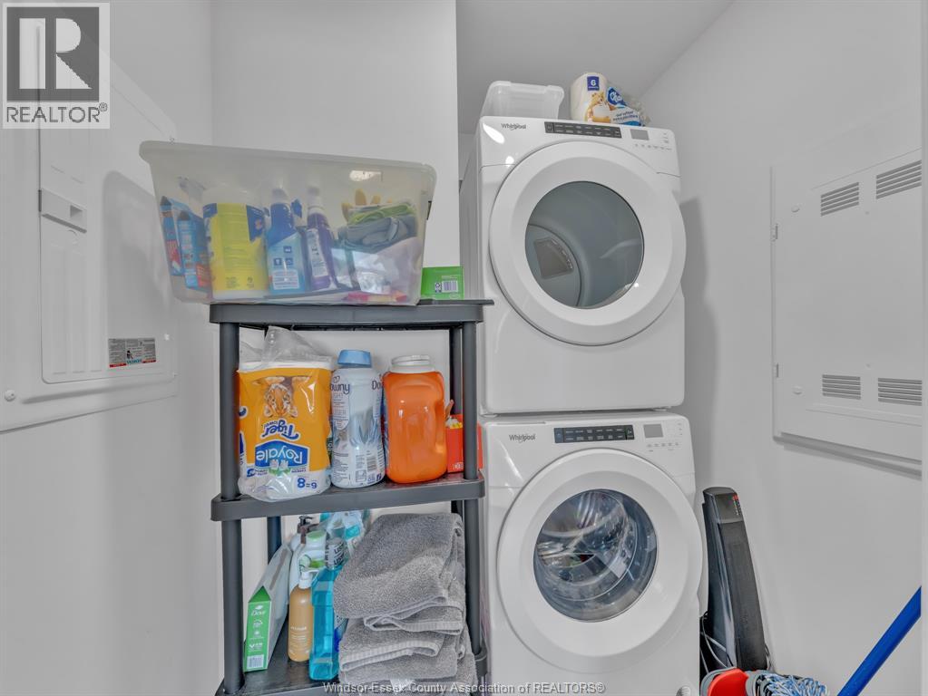 Welcome to this impeccably maintained 1-bedroom, 1-bath condominium in the desirable Laurier Horizons building, ideally located in the heart of sought-after LaSalle. Just one year old, this modern unit features a bright, open-concept layout with tasteful neutral finishes and a private balcony offering peaceful views of the adjacent trail and green space. The convenience of in-suite laundry is paired with a same-floor storage locker located just steps from the unit. Residents also enjoy access to a sixth-floor meditation and fitness room, along with well-kept outdoor common areas. An assigned parking space is included, with visitor parking available on site. Situated close to shopping, dining, and everyday amenities, this condo is an excellent opportunity for first-time buyers, downsizers, or anyone seeking a low-maintenance lifestyle in one of Essex County’s most desirable communities. Schedule your private showing today. (id:4555)