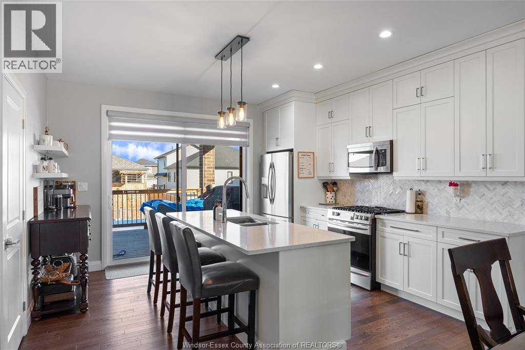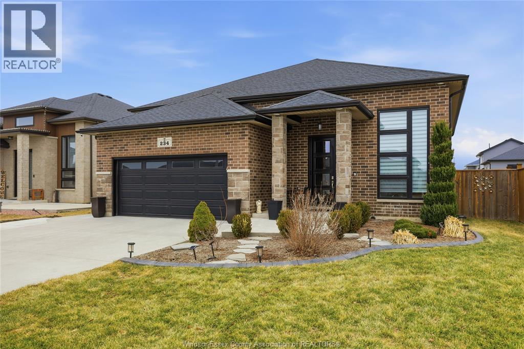 Homes like this rarely come available in the highly sought-after Kingsbridge neighbourhood of Amherstburg. Welcome to 234 Mullen Road, a beautifully finished raised ranch built in 2019 offering two fully finished levels thoughtfully designed for both entertaining and everyday living. The bright open-concept main floor features vaulted ceilings and a stunning kitchen with quartz countertops, stainless steel appliances, pantry and oversized island overlooking the spacious living and dining areas. Patio doors lead to your private backyard retreat complete with a covered deck, pool, hot tub and fully fenced yard - the perfect space for relaxing or hosting friends and family. The main level also includes a spacious primary bedroom with ensuite bathroom, along with two additional bedrooms and a full bath. The fully finished lower level offers exceptional additional living space featuring a large family room with gas fireplace, custom built-in cabinetry and a beautifully designed bar with beverage fridges and display storage. This level also includes a fourth bedroom with sliding barn doors, a full bathroom and flexible space ideal for a home gym, office or recreation area. Additional highlights include an attached two-car garage with inside entry and modern finishes throughout. Located in one of Amherstburg's most desirable family-friendly communities close to parks, schools and everyday amenities, this move-in ready home offers the perfect blend of comfort, style and lifestyle. (id:4555)