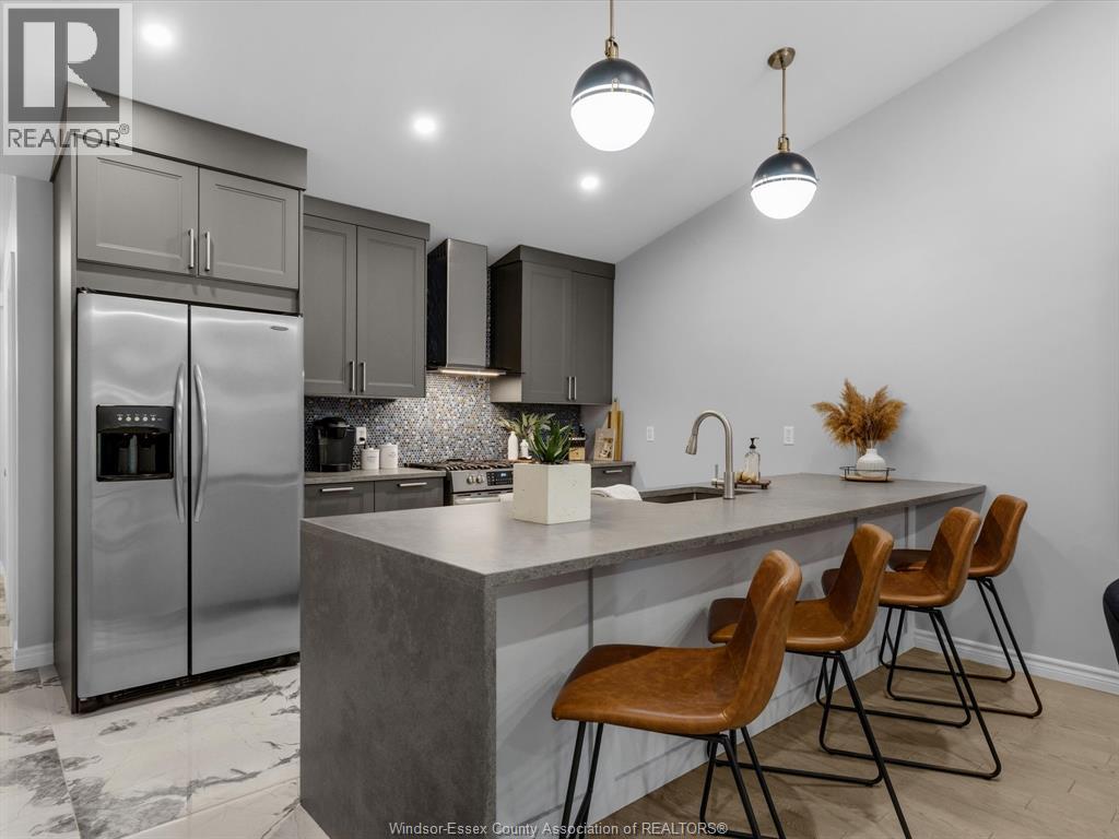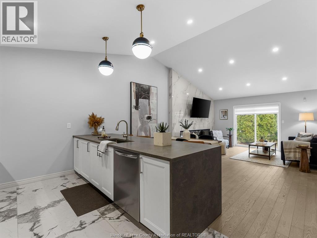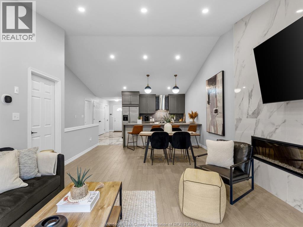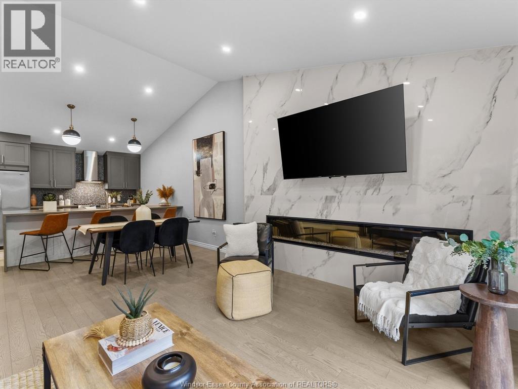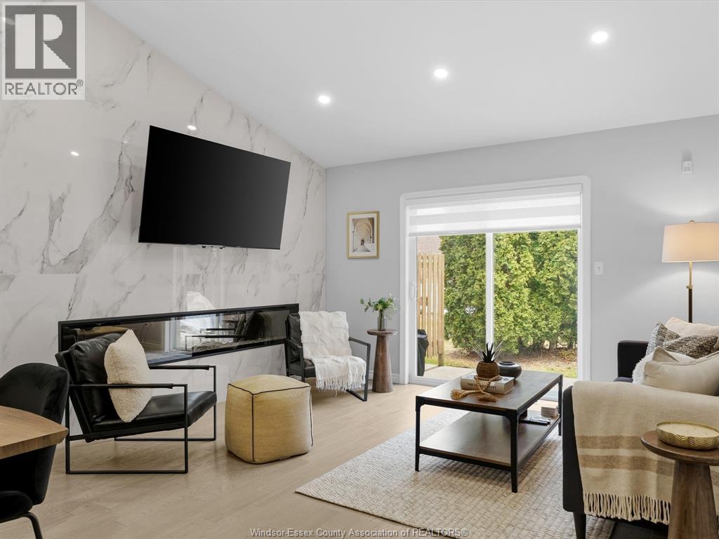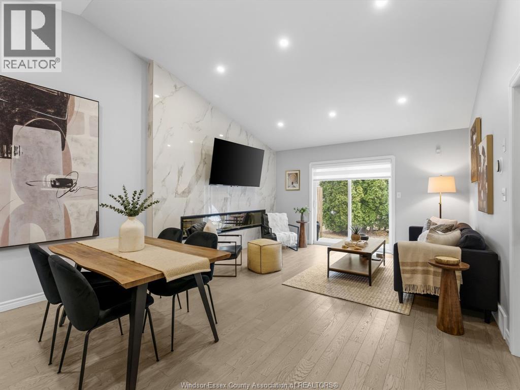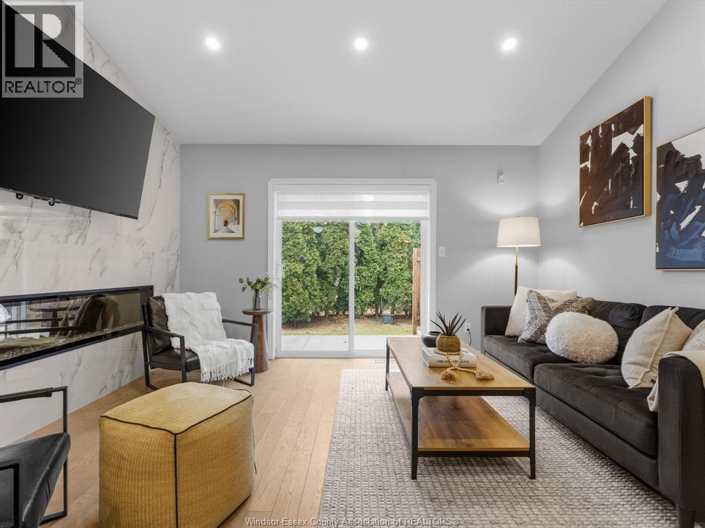 Completely renovated top to bottom in 2022, this beautifully updated 2+1 bedroom, 3 full bathroom townhome is located in a highly desirable East Windsor neighbourhood. Every detail was redone, including the bathrooms, kitchen, flooring, tile, paint, light fixtures, and pot lights throughout — truly move-in ready with modern finishes from top to bottom.The main floor features two spacious bedrooms, a convenient laundry area, and engineered hardwood flooring. The custom open-concept kitchen is the heart of the home, showcasing a stunning waterfall island, quartz countertops, and 2x2 tile in the kitchen area. The space flows seamlessly into the dining and living area, highlighted by a large feature wall with a high-efficiency electric fireplace and vaulted ceilings that create a bright, airy feel. The primary bedroom offers a walk-in closet and a beautifully updated ensuite bathroom. Step outside to your private cement patio — the perfect place to enjoy your morning coffee or relax in the evening. The fully finished basement is a gorgeous entertainer’s dream, complete with a second large fireplace, a custom bar with granite counters, a third bedroom, and its own three-piece bathroom — ideal for guests or extended family. Additional updates include a newer AC unit, new washer and dryer, and a new stove. The $115/month HOA fee covers snow removal, grass cutting, aerating, fertilizer and weed control, fall clean-up, and roof maintenance, making for easy, low-maintenance living. Close to all amenities and just steps from Blue Heron Pond and scenic walking trails, this home truly has it all. (id:4555)