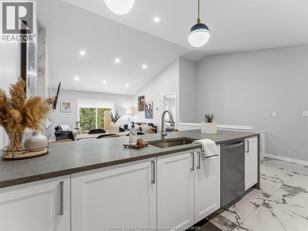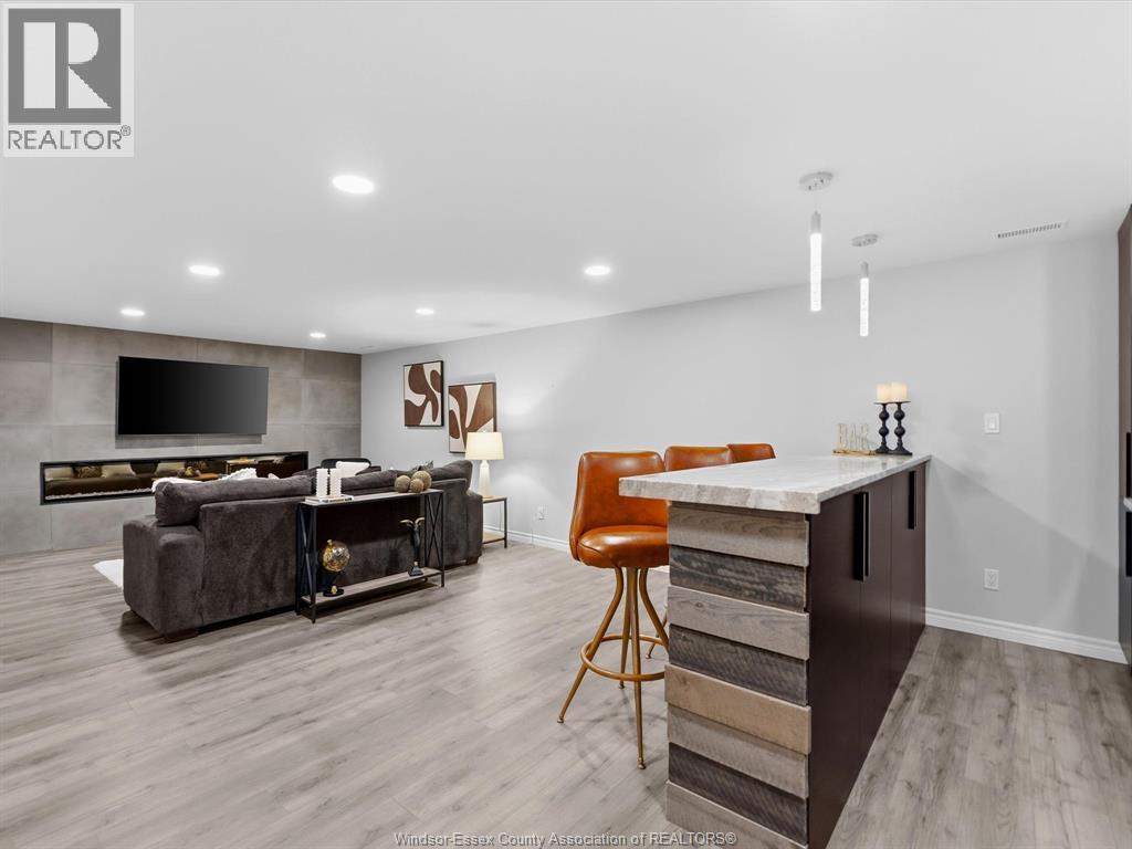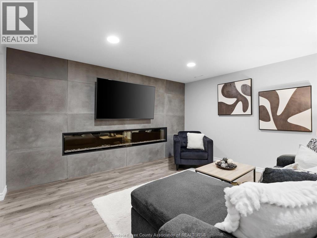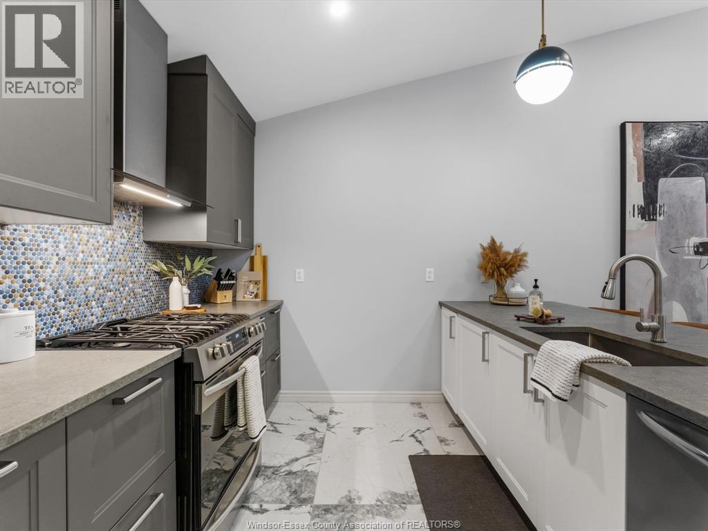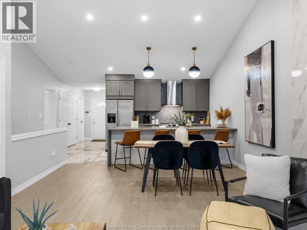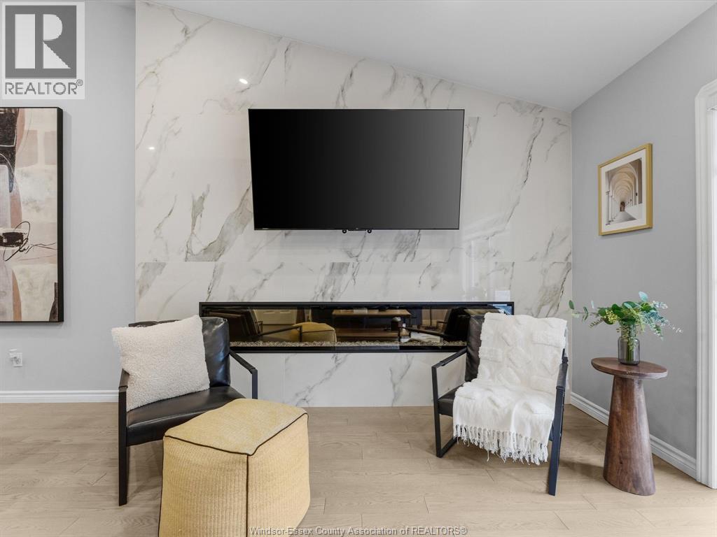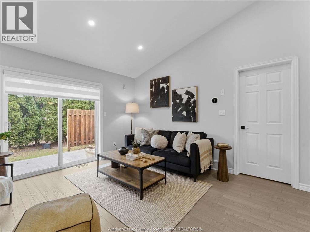 Completely renovated top to bottom in 2022, this beautifully updated 2+1 bedroom, 3 full bathroom townhome is located in a highly desirable East Windsor neighbourhood. Every detail was redone, including the bathrooms, kitchen, flooring, tile, paint, light fixtures, and pot lights throughout — truly move-in ready with modern finishes from top to bottom.The main floor features two spacious bedrooms, a convenient laundry area, and engineered hardwood flooring. The custom open-concept kitchen is the heart of the home, showcasing a stunning waterfall island, quartz countertops, and 2x2 tile in the kitchen area. The space flows seamlessly into the dining and living area, highlighted by a large feature wall with a high-efficiency electric fireplace and vaulted ceilings that create a bright, airy feel. The primary bedroom offers a walk-in closet and a beautifully updated ensuite bathroom. Step outside to your private cement patio — the perfect place to enjoy your morning coffee or relax in the evening. The fully finished basement is a gorgeous entertainer’s dream, complete with a second large fireplace, a custom bar with granite counters, a third bedroom, and its own three-piece bathroom — ideal for guests or extended family. Additional updates include a newer AC unit, new washer and dryer, and a new stove. The $115/month HOA fee covers snow removal, grass cutting, aerating, fertilizer and weed control, fall clean-up, and roof maintenance, making for easy, low-maintenance living. Close to all amenities and just steps from Blue Heron Pond and scenic walking trails, this home truly has it all. (id:4555)