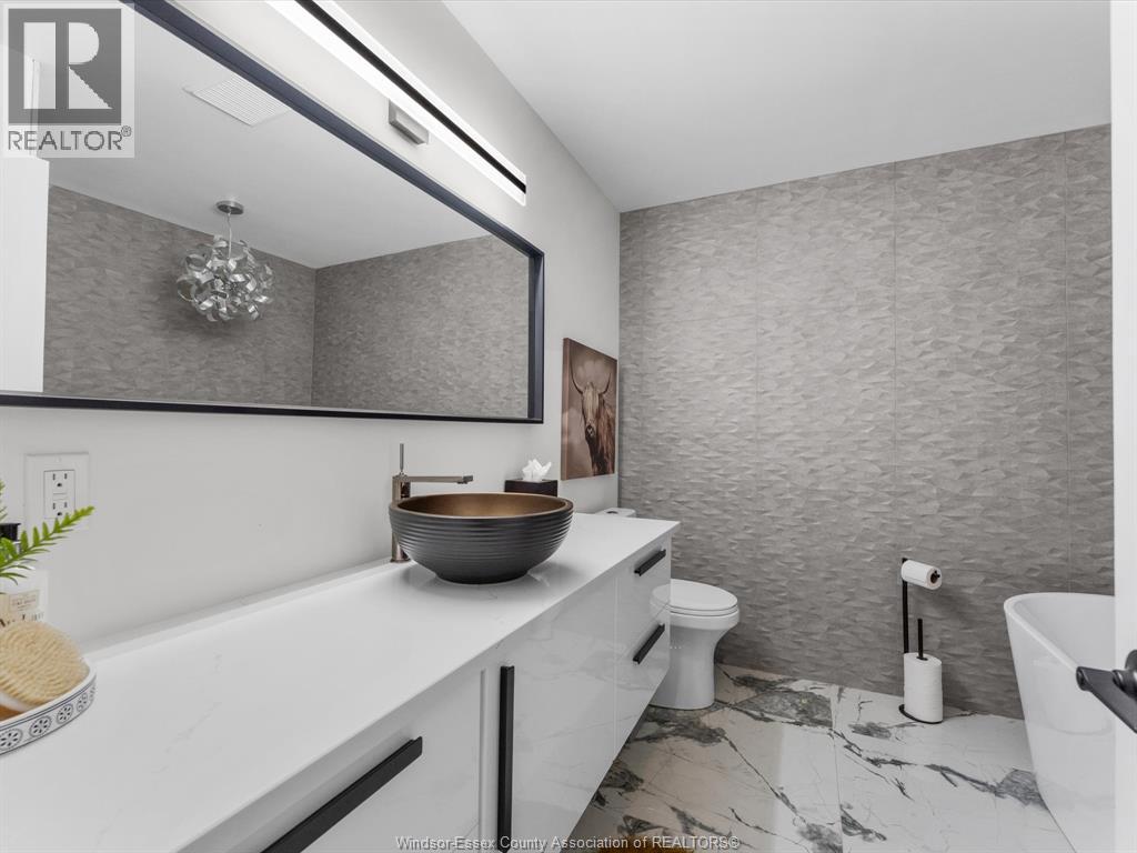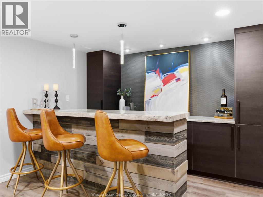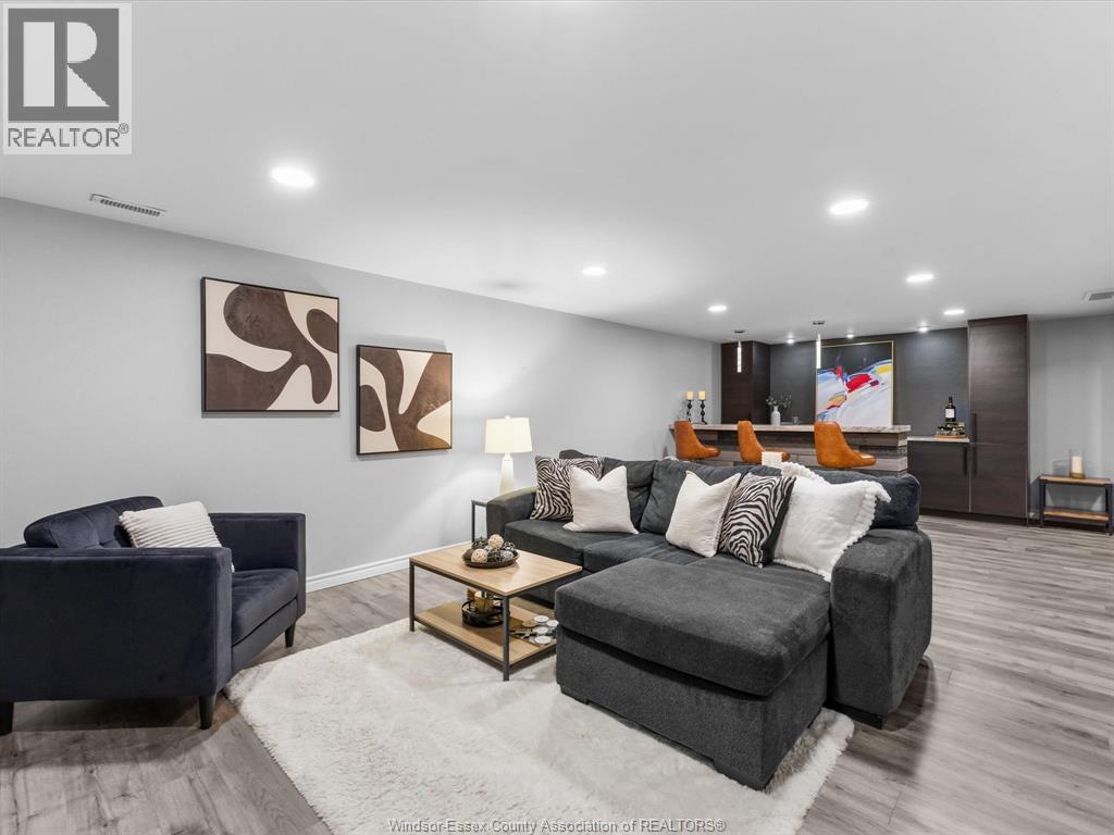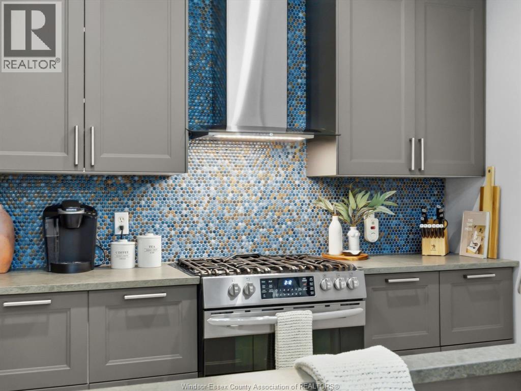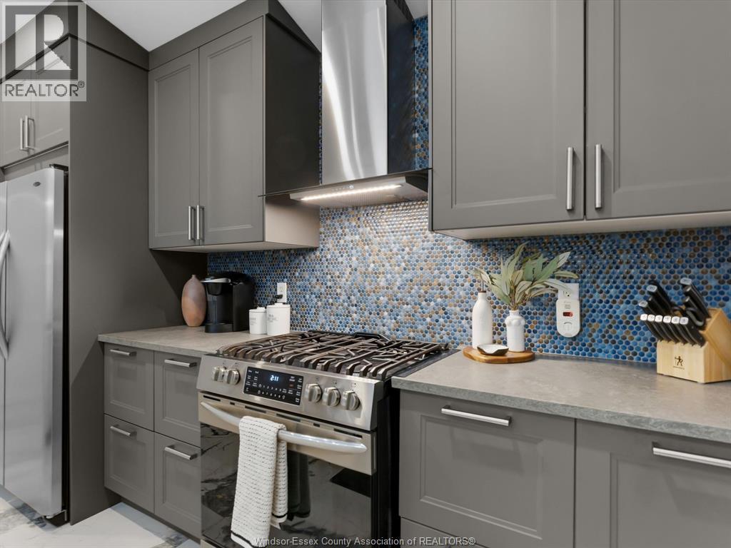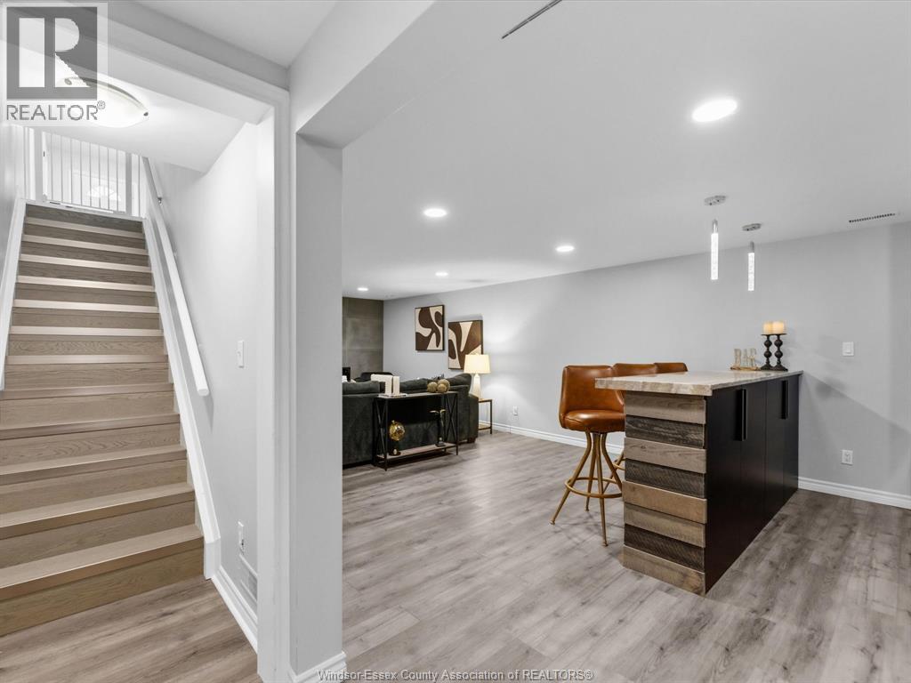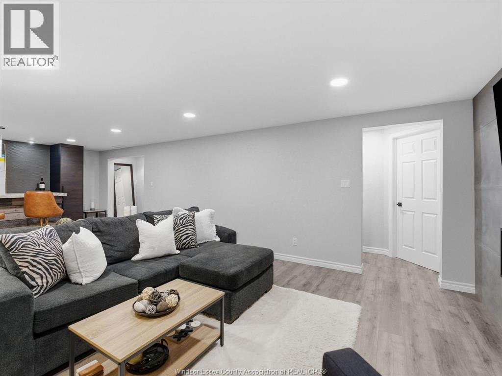 Completely renovated top to bottom in 2022, this beautifully updated 2+1 bedroom, 3 full bathroom townhome is located in a highly desirable East Windsor neighbourhood. Every detail was redone, including the bathrooms, kitchen, flooring, tile, paint, light fixtures, and pot lights throughout — truly move-in ready with modern finishes from top to bottom.The main floor features two spacious bedrooms, a convenient laundry area, and engineered hardwood flooring. The custom open-concept kitchen is the heart of the home, showcasing a stunning waterfall island, quartz countertops, and 2x2 tile in the kitchen area. The space flows seamlessly into the dining and living area, highlighted by a large feature wall with a high-efficiency electric fireplace and vaulted ceilings that create a bright, airy feel. The primary bedroom offers a walk-in closet and a beautifully updated ensuite bathroom. Step outside to your private cement patio — the perfect place to enjoy your morning coffee or relax in the evening. The fully finished basement is a gorgeous entertainer’s dream, complete with a second large fireplace, a custom bar with granite counters, a third bedroom, and its own three-piece bathroom — ideal for guests or extended family. Additional updates include a newer AC unit, new washer and dryer, and a new stove. The $115/month HOA fee covers snow removal, grass cutting, aerating, fertilizer and weed control, fall clean-up, and roof maintenance, making for easy, low-maintenance living. Close to all amenities and just steps from Blue Heron Pond and scenic walking trails, this home truly has it all. (id:4555)